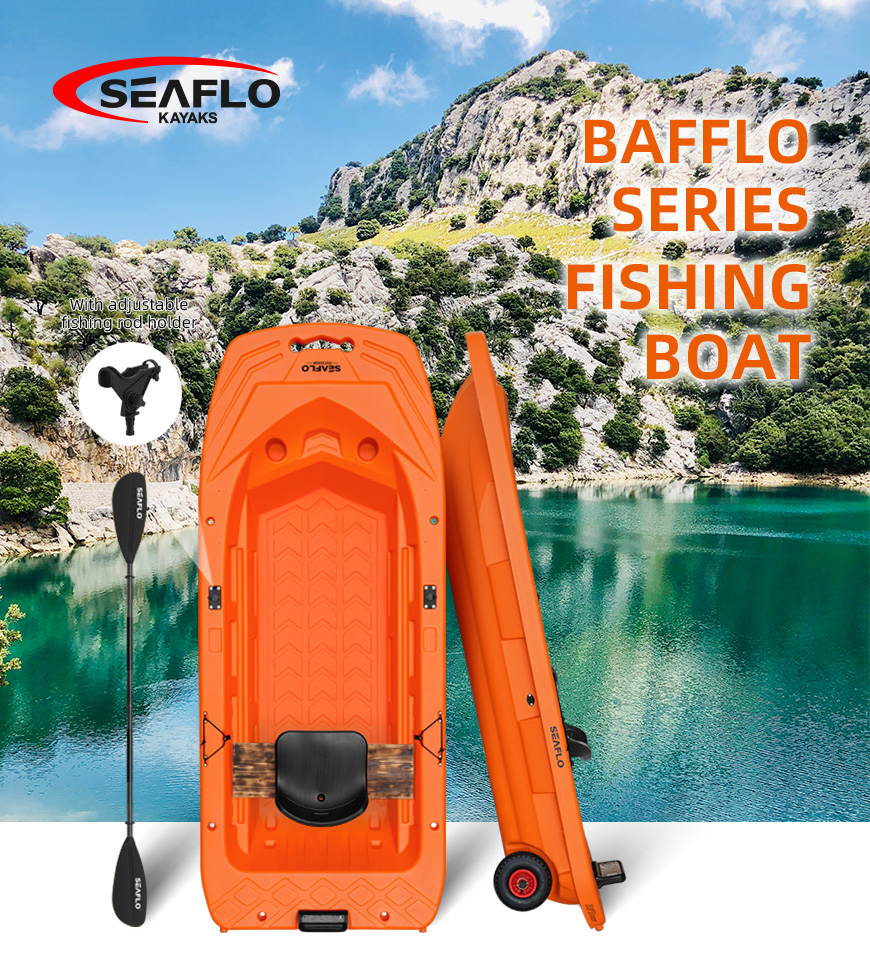 This kayak is versatile and can be used for fishing, water rescue, river cleanning and recreation. Spacious cabin design, can hold a large amount of water equipment and support multiple passengers. The bottom is equipped with Transporting wheels which can be easily tow it. Designed with a comfortable seat that can be rotated 360° to observe the movement of the fish in all directions. Wide hull design, high resistance to wind and waves, can be smooth sailing on the water. Slender hull, good tracking, fast rowing speed. Equipped with paddle and fishing rod holders. The stern is equipped with a trolling motor mounting bracket, which enables it be powered by a trolling motor or a small gasoline engine. Recommended trolling motor: 2.5 HP