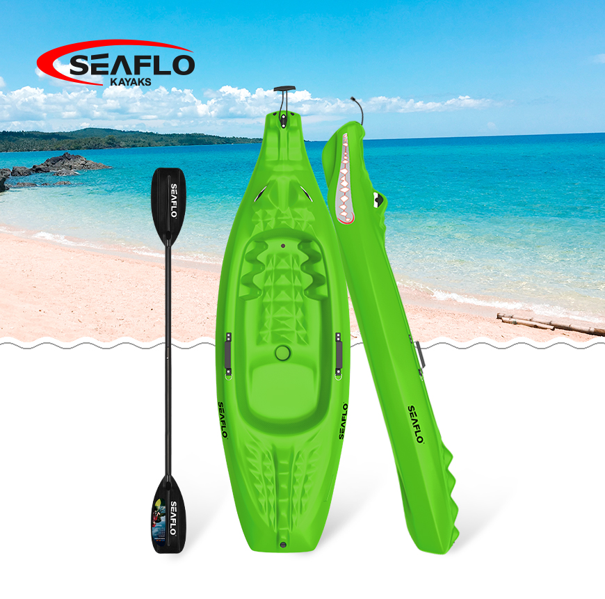 Look out! A Crocodile is coming. New Innovative Arrival - Crocodile Kayak. It is specially designed for children, unique styling makes your child be the people focus when he/she is in the water. Thanks to the blow mold processing, the kayak is very light for children to carry. The flat bottom shape and Hydrodynamic design make the kayak easy and safe to paddle.