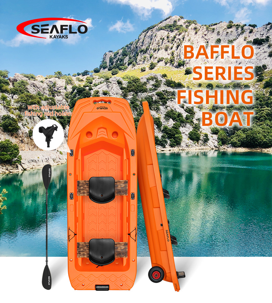 This kayak is versatile and can be used for fishing, water rescue, river cleanning and recreation. Spacious cabin design, can hold a large amount of water equipment and support multiple passengers. Bottom equipped with tail wheel accompanying block can enhance buoyancy, more secure rowing. Wide hull design, not afraid of wind and waves, can be smooth sailing on the water. Slender hull, good tracking, improve rowing speed. Kayaks are equipped with OARS and fishing stands. The stern can be fitted with a trolling motor mount, which can be added with trolling motor or small diesel power. Recommended trolling motor: 4 HP