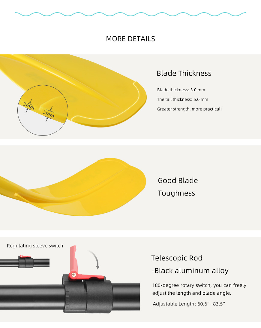 With its Aluminum shaft and fiberglass reinforced polypropylene blades, it is an upgrade which gives an even lighter, stronger and stiffer paddle. It has a great blade shape for straight ahead tracking with a palm style grip for a good fit and controlled strokes. The quick adjustable length fits any sized paddles and board, the shortest can be 152cm which fits perfectly with the Adult SUP.