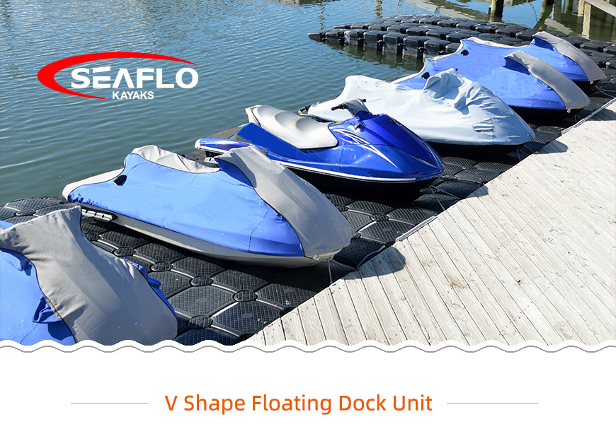 SEAFLO V shape dock unit is made out of HDPE material added with some relevant chemical additives, which makes the floating dock strong and durable enough to resistant to terrible climate change and some damage activities, it is also resistant to UV ray, freezing, and corrosion by marine chemical or oil. No pollution to the environment, and no harm to our living world. The modular design makes it easy and fast to assemble floating platforms and it can go up or down automatically along with the tidewater, it is supper flexible to fit in various of sceneries. Perfect solution to build the Floating Platforms, such as Floating Bridges, Floating Docks etc.