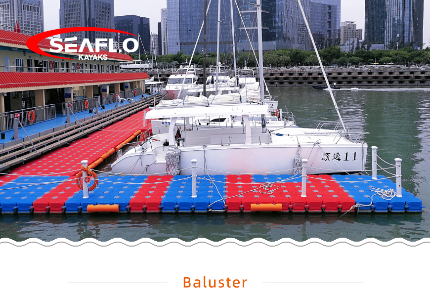 SEAFLO Baluster is made out of HDPE material added with some relevant chemical additives, which makes the floating platform strong and durable enough to resistant to terrible climate change and some damage activities, it is also resistant to UV ray, freezing, and corrosion by marine chemical or oil. No pollution to the environment, and no harm to our living world. It could be supported to build a variety of practical and reliable water platforms.